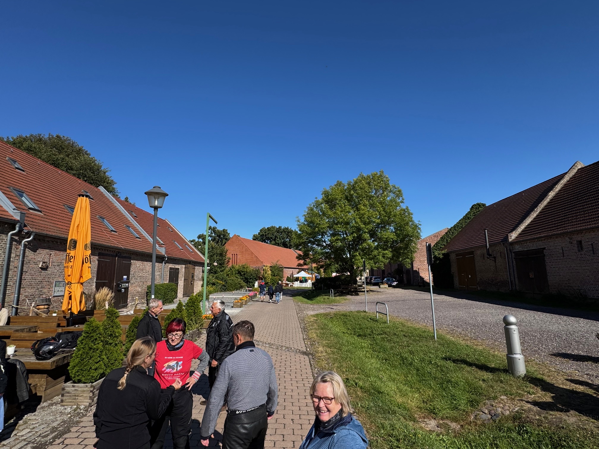 Am zweiten Tag ging es auch gleich mit Kultur weiter, im Ziegeleipark Mildenberg. Auch diese Führung war sehr interessant, allerdings wäre ein Mikrofon sehr hilfreich gewesen. Die riesigen Rundöfen waren aus technischer Sicht sehr modern für die Zeit. Mit Ziegeln aus Mildenberg wurde sehr sehr viel in Berlin gebaut. Nach einer langen und sehr verregneten Fahrt kamen wir Nachmittags im Scheunenviertel Kremmen an. Püntklich zum Kaffee ließ sich die Sonne wieder blicken.